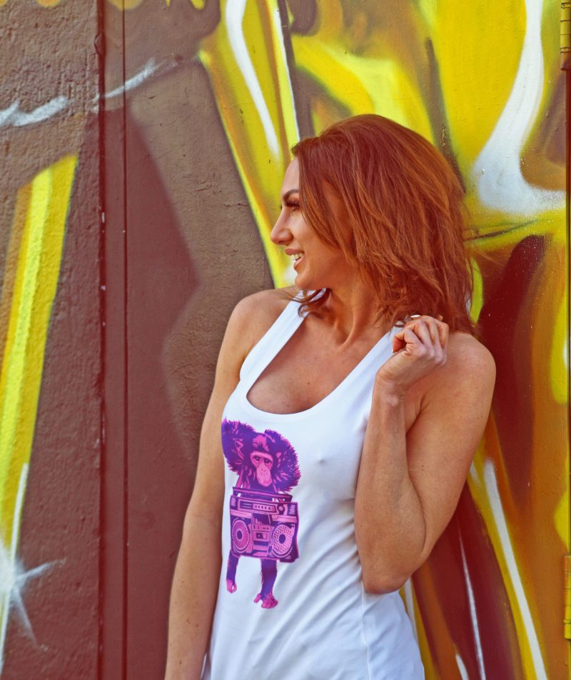 Fitted racerback vest tops made from organic cotton/lycra for extra comfort.